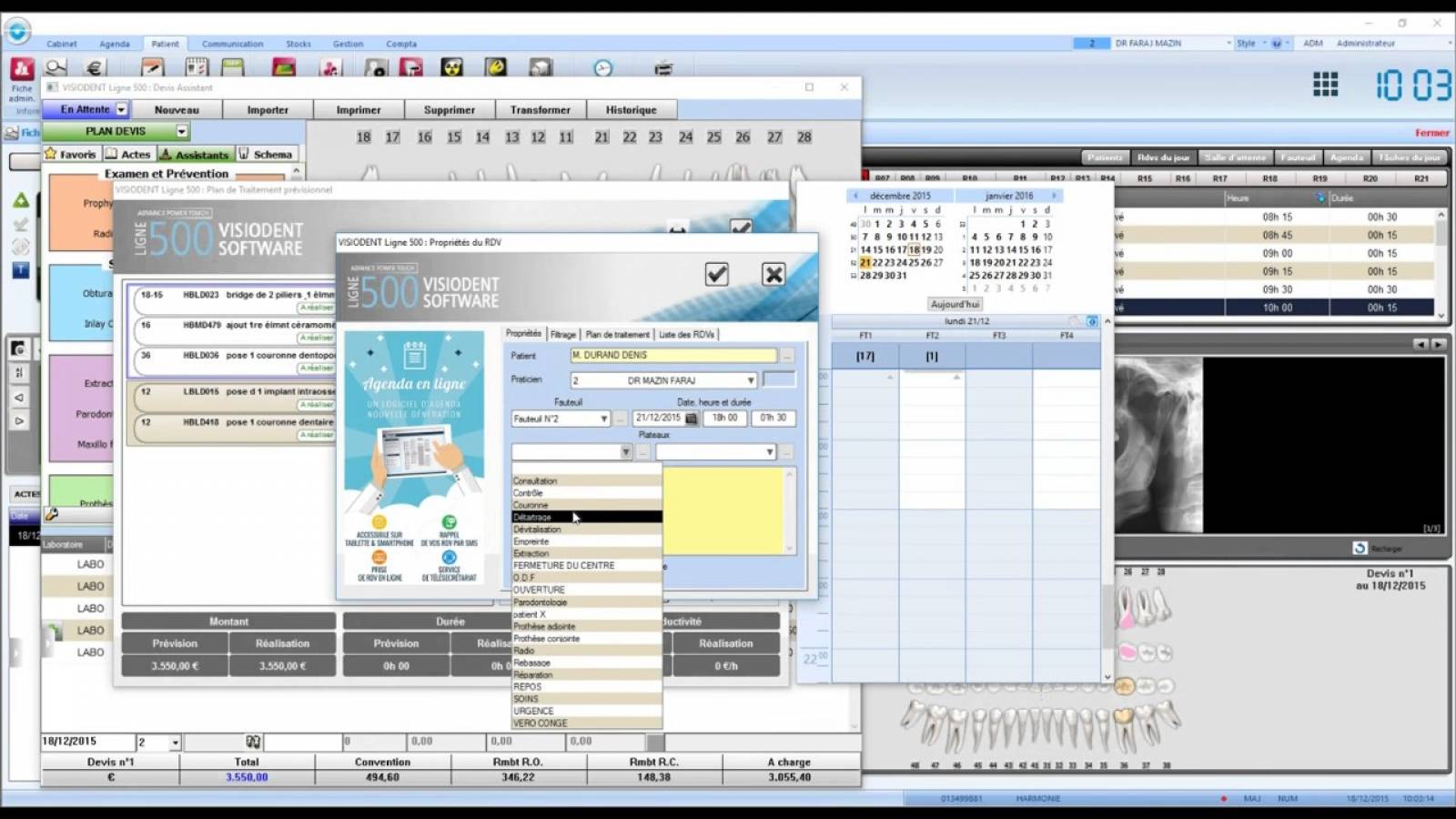 Lorsque vous proposerez un devis à votre patient tous les montants sont calculés (remboursements des régimes, obligatoire et complémentaire, reste à charge). Vous pourrez le transformer directement en plan de traitement.