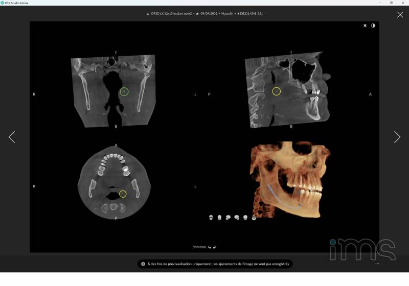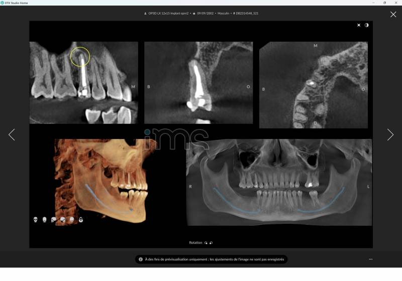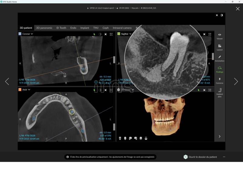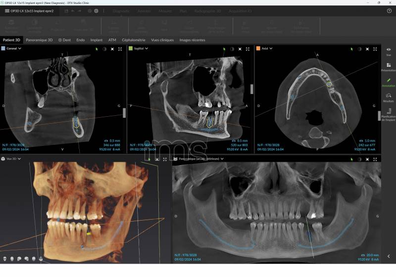 avec logiciel 3D DTX Clinic (licences jusqu'à 40 postes) : Intelligence Artificielle, Aide au diagnostic, Gestion d'images multiformats (JPEG, DICOM, STL), Planification implantaire, etc.