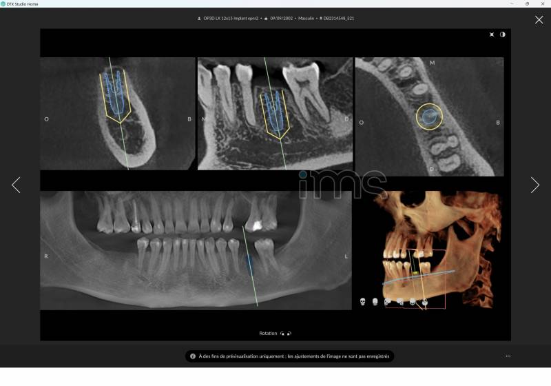 Planification implantaire, création de guides chirurgicaux et canines incluses