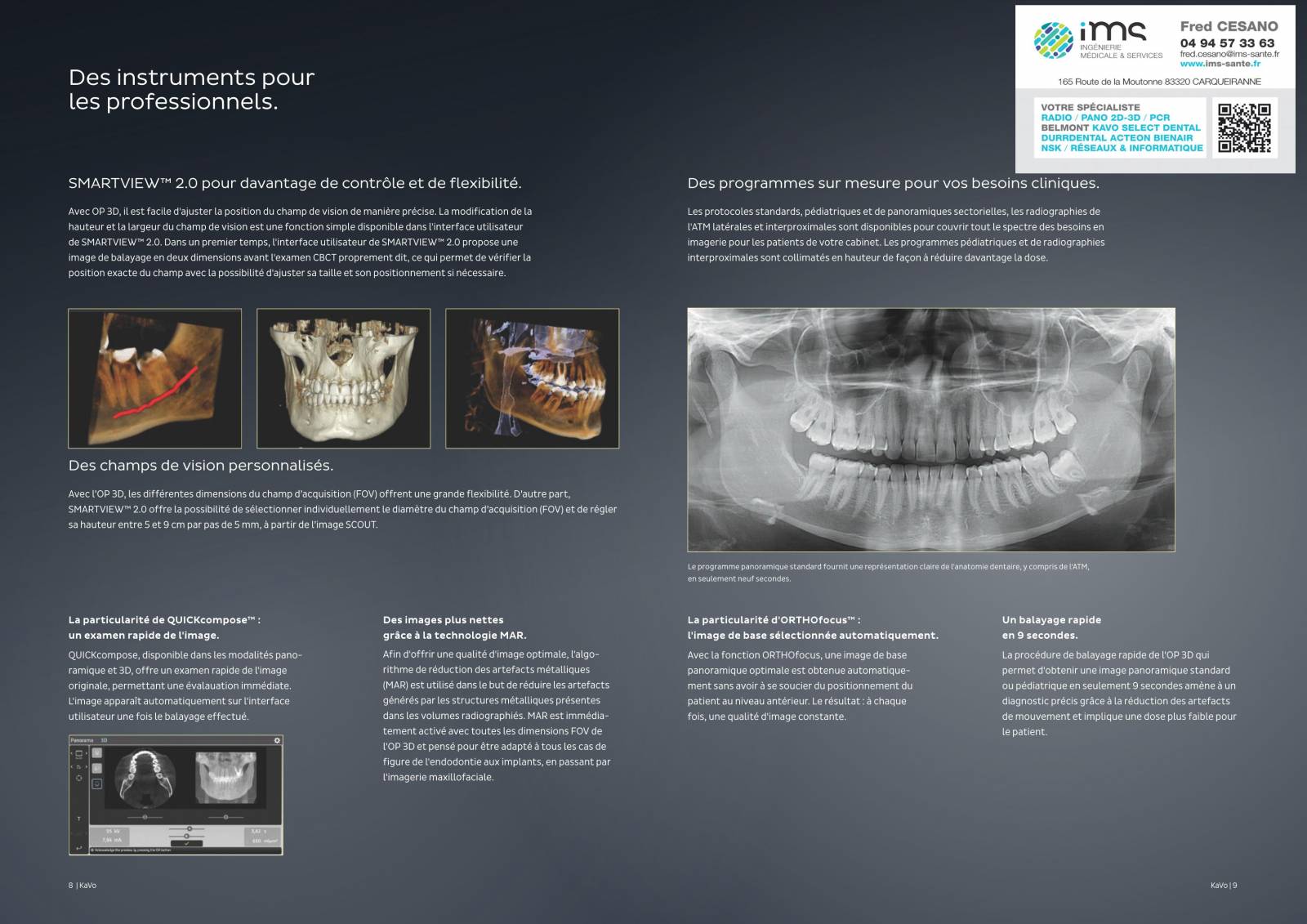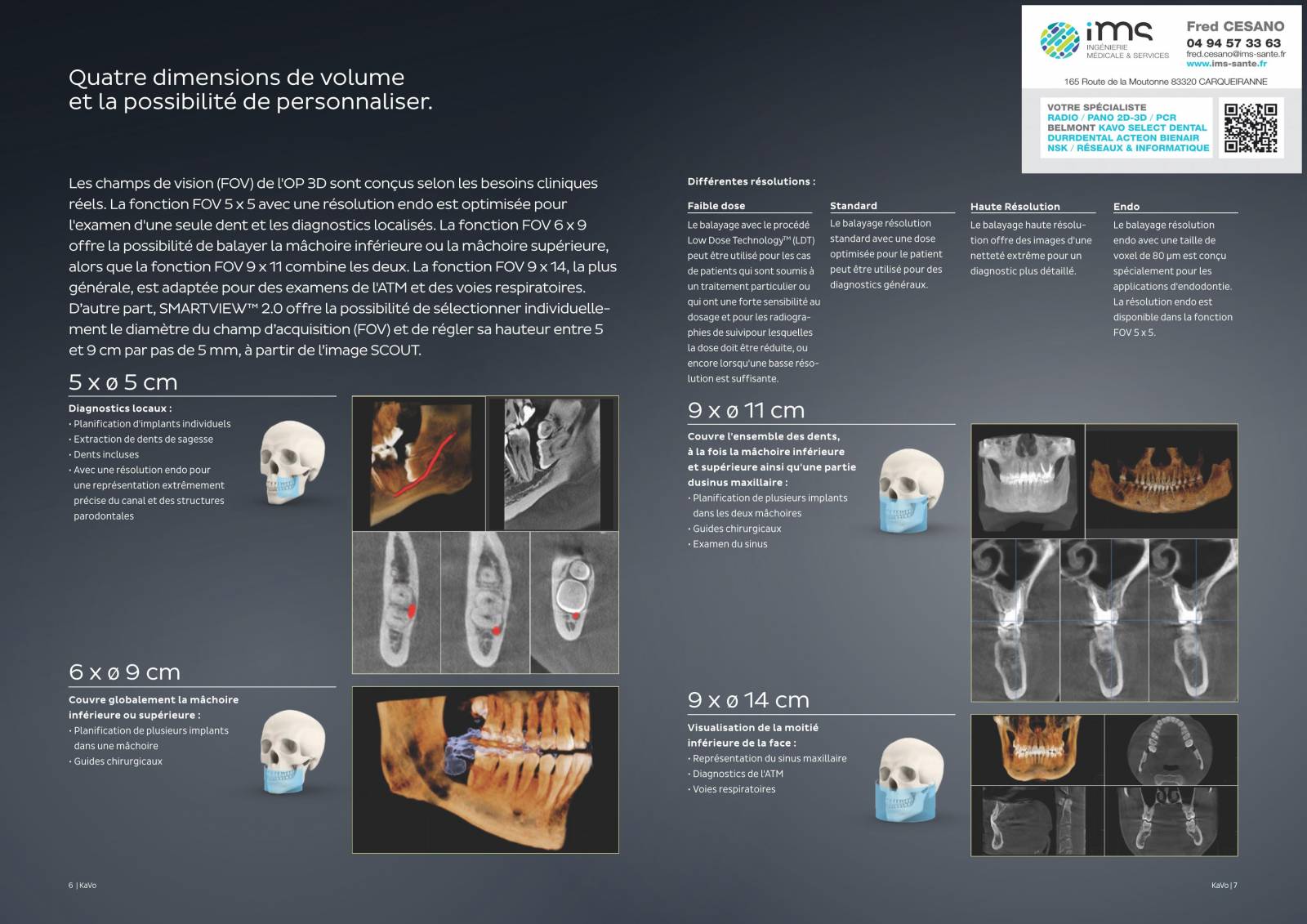 FOV 9 x ø 11 cm – Couvre l'ensemble des dents, à la fois la mâchoire inférieure et supérieure ainsi qu'une partie dusinus maxillaire :