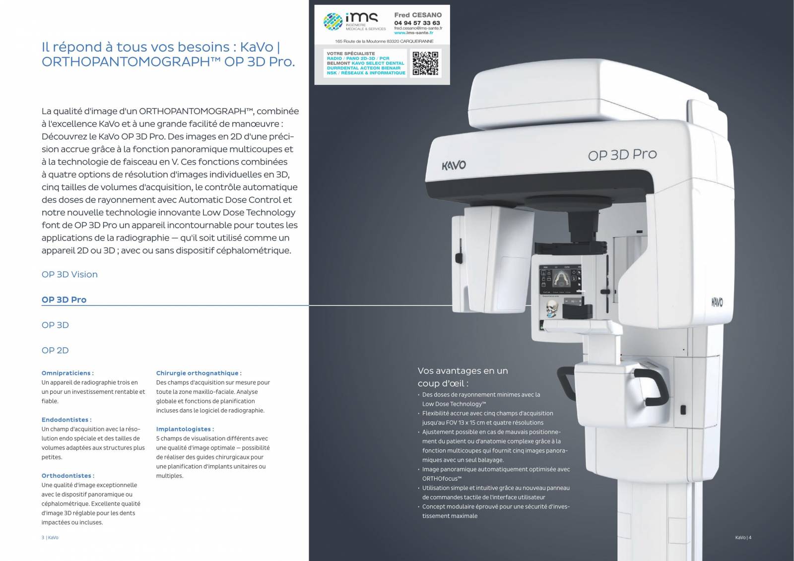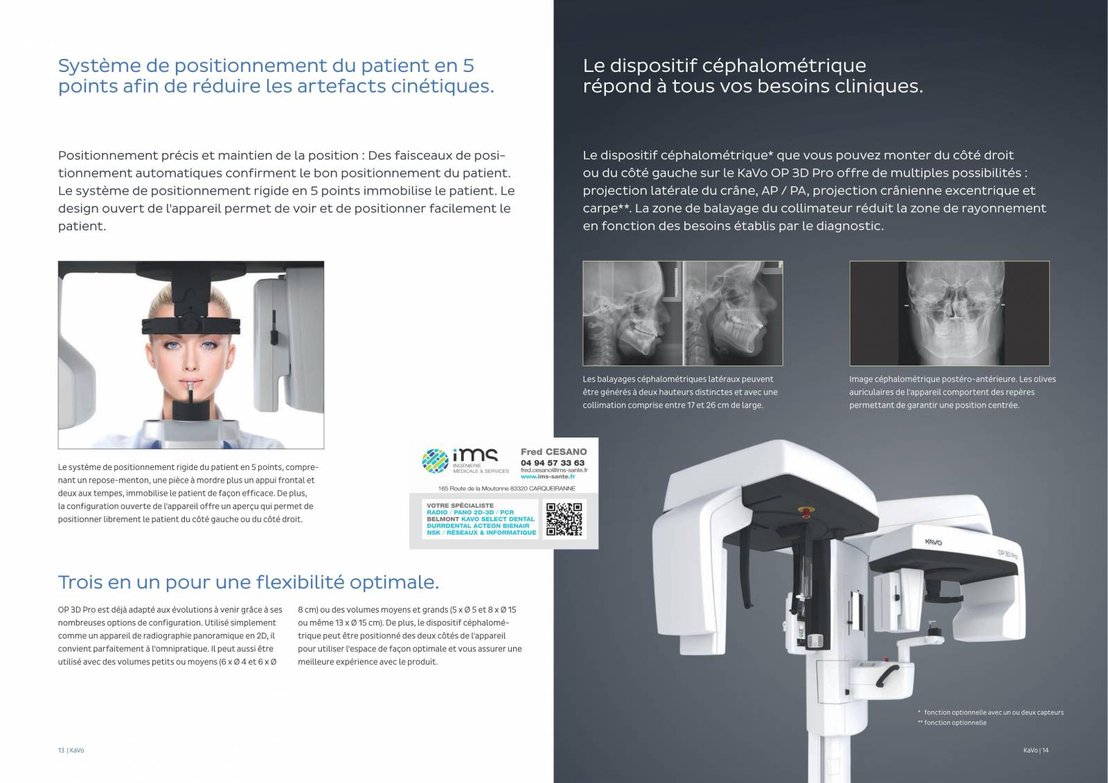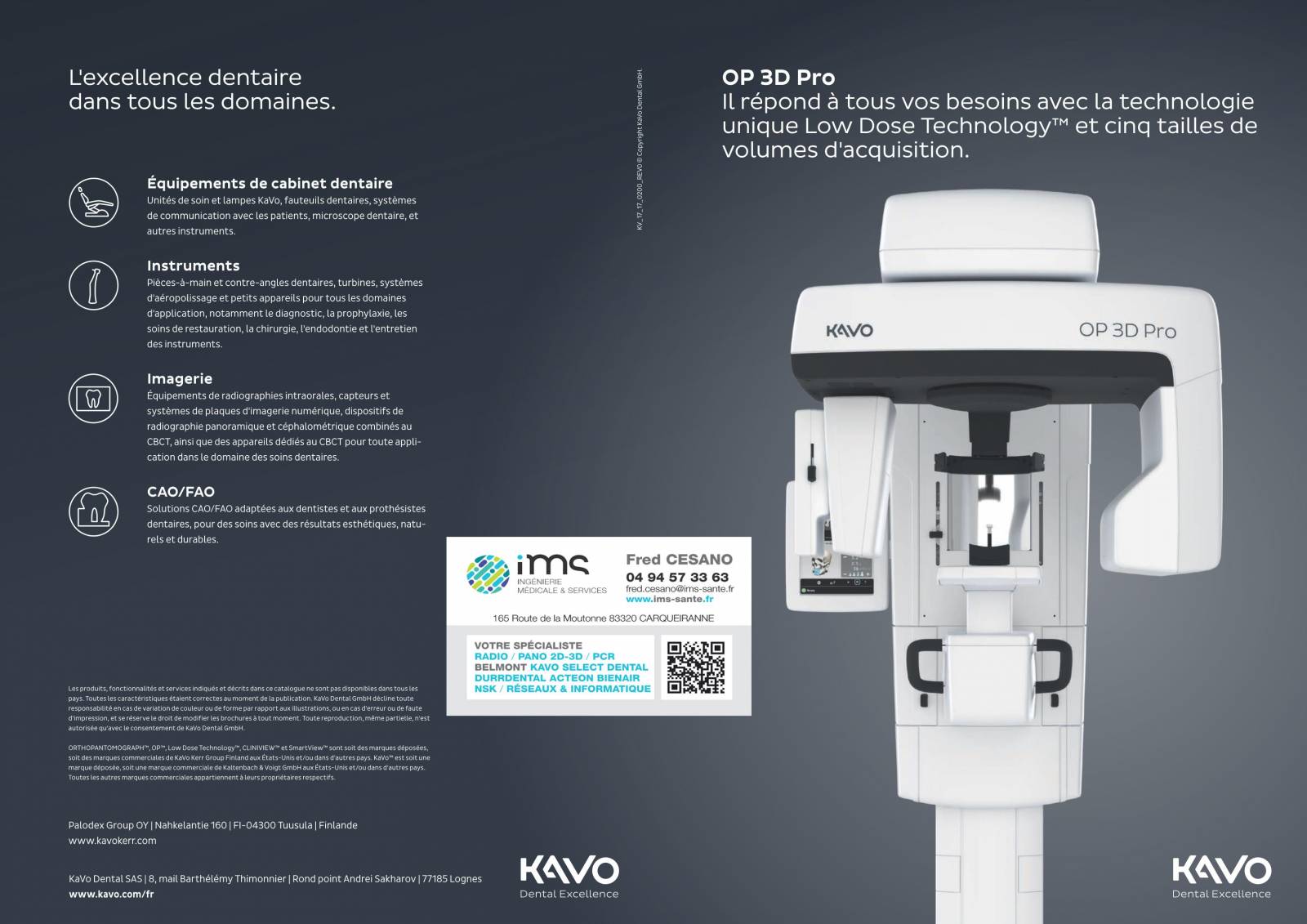 La qualité d'image d'un ORTHOPANTOMOGRAPH™, combinée à l'excellence KaVo et à une grande facilité de manœuvre : Découvrez le conebeam KaVo OP3D Pro / DEXIS OP3D PRO. Des images en 2D d'une précision accrue grâce à la fonction panoramique multi coupes et à la technologie de faisceau en V. Ces fonctions combinées à quatre options de résolution d'images individuelles en 3D, cinq tailles de volumes d'acquisition, le contrôle automatique des doses de rayonnement avec Automatic Dose Control et notre nouvelle technologie innovante Low Dose Technology font du conebeam DEXIS OP3D Pro un appareil incontournable pour toutes les applications de la radiographie — qu'il soit utilisé comme un appareil 2D ou 3D ; avec ou sans dispositif céphalométrique.