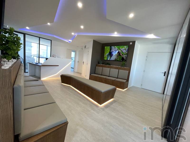 Bien évidemment il a fallu gérer les finitions (plomberie, électricité, montage des meubles, etc.) que les artisans n'avaient "plus le temps" de réaliser.... Mais au final, le résultat est plutôt agréable et on peut accueillir les patients.