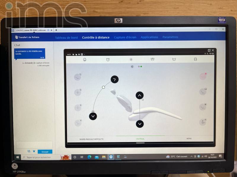 Tablette assistante avec rappel des commandes fauteuils, rinçage et remplissage du gobelet