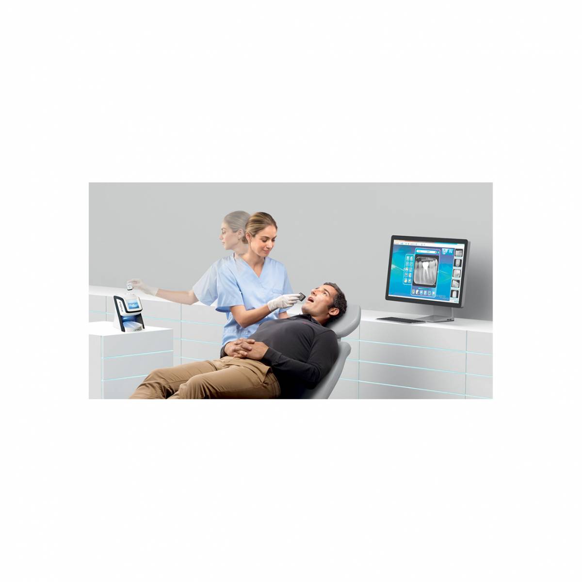 Elégant, compact et simple d'utilisation : le plus petit scanner d'imagerie à plaque au phosphore du marché pour votre utilisation exclusive.
