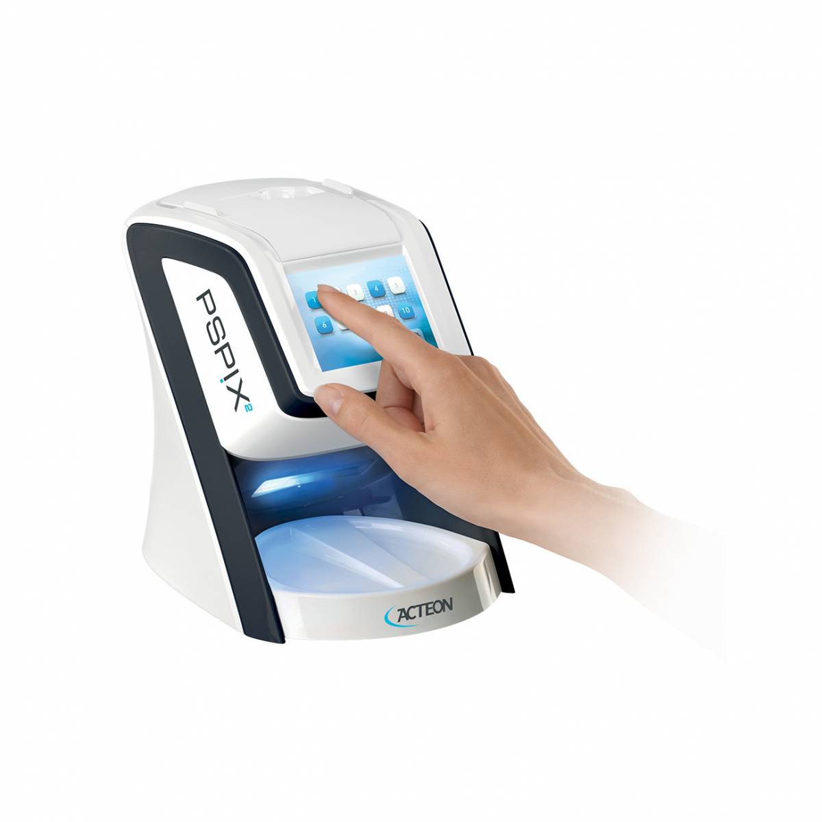 Doté d'un concept exclusif "Click and Scan", le nouveau PSPIX² est entièrement intuitif: faites votre choix sur son grand écran tactile, glissez votre plaque au phosphore et laissez le PSPIX² faire le reste...
